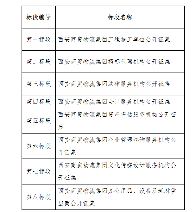第二標(biāo)段:西安商貿(mào)物流集團(tuán)招標(biāo)代理機(jī)構(gòu)公開征集