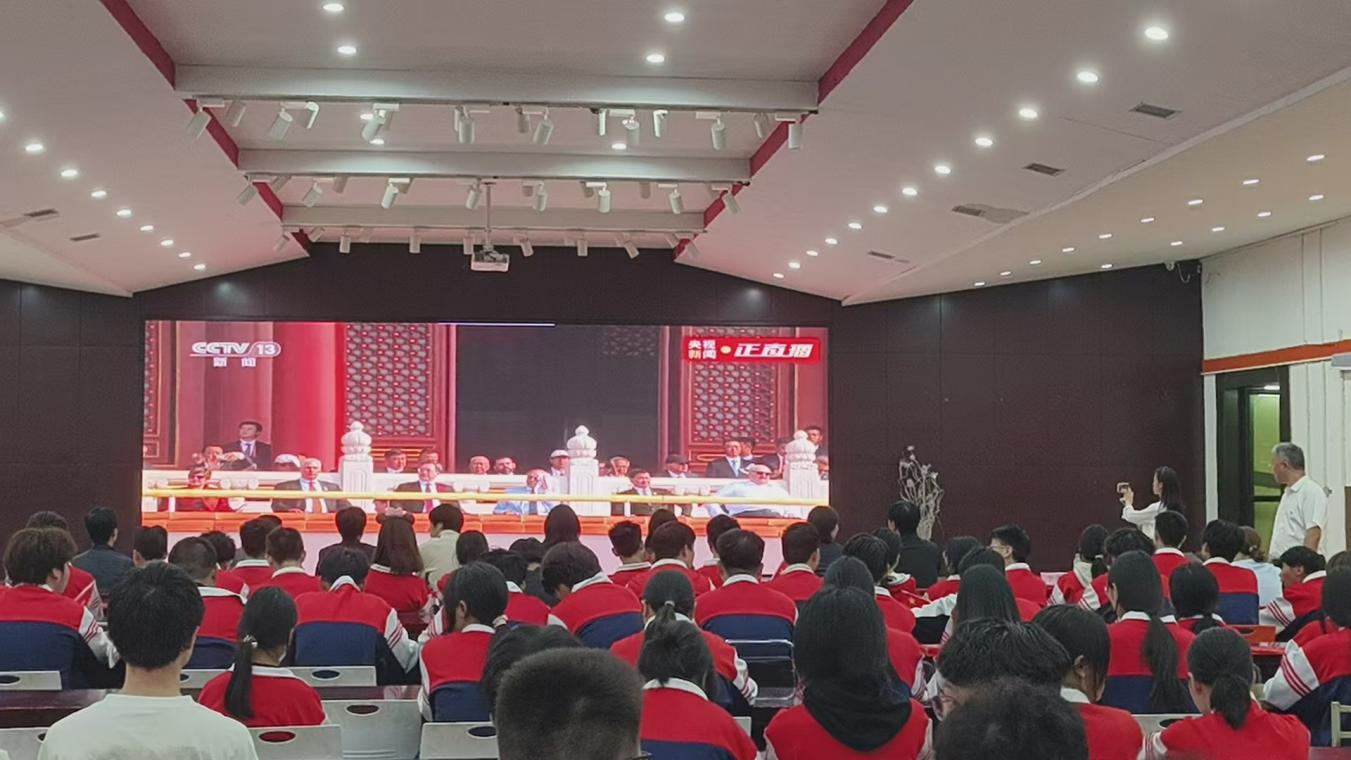 9月3日,物資職校200余名師生代表集中收看紀(jì)念大會(huì)實(shí)況直播,銘記歷史、緬懷先烈。習(xí)近平總書記的重要講話令學(xué)生備受鼓舞,增強(qiáng)了師生的民族自豪感與集體凝聚力,讓大家更清晰認(rèn)識(shí)到自身責(zé)任與使命。全體教師熱情高昂的表示將傳承弘揚(yáng)愛(ài)國(guó)主義精神,把抗戰(zhàn)精神融入課堂,牢記育人使命,為強(qiáng)國(guó)建設(shè)、民族復(fù)興作貢獻(xiàn)。廣大學(xué)生激情澎湃的表達(dá),將以先輩為榜樣,刻苦學(xué)習(xí)、堅(jiān)定信念,努力成長(zhǎng)為擔(dān)當(dāng)民族復(fù)興大任的時(shí)代新人。